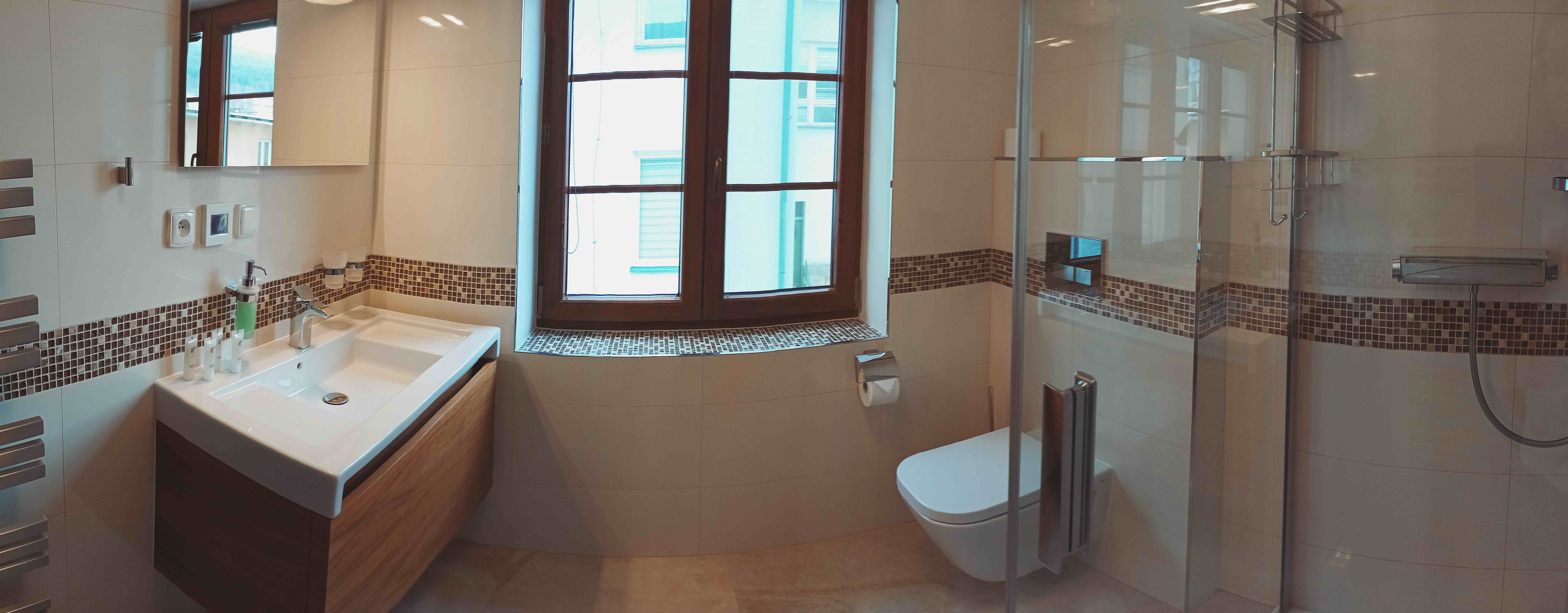 Koupelna je vybavena WC a sprchovým koutem, k dispozici je Vám fén, ručníky a toaletní potřeby.