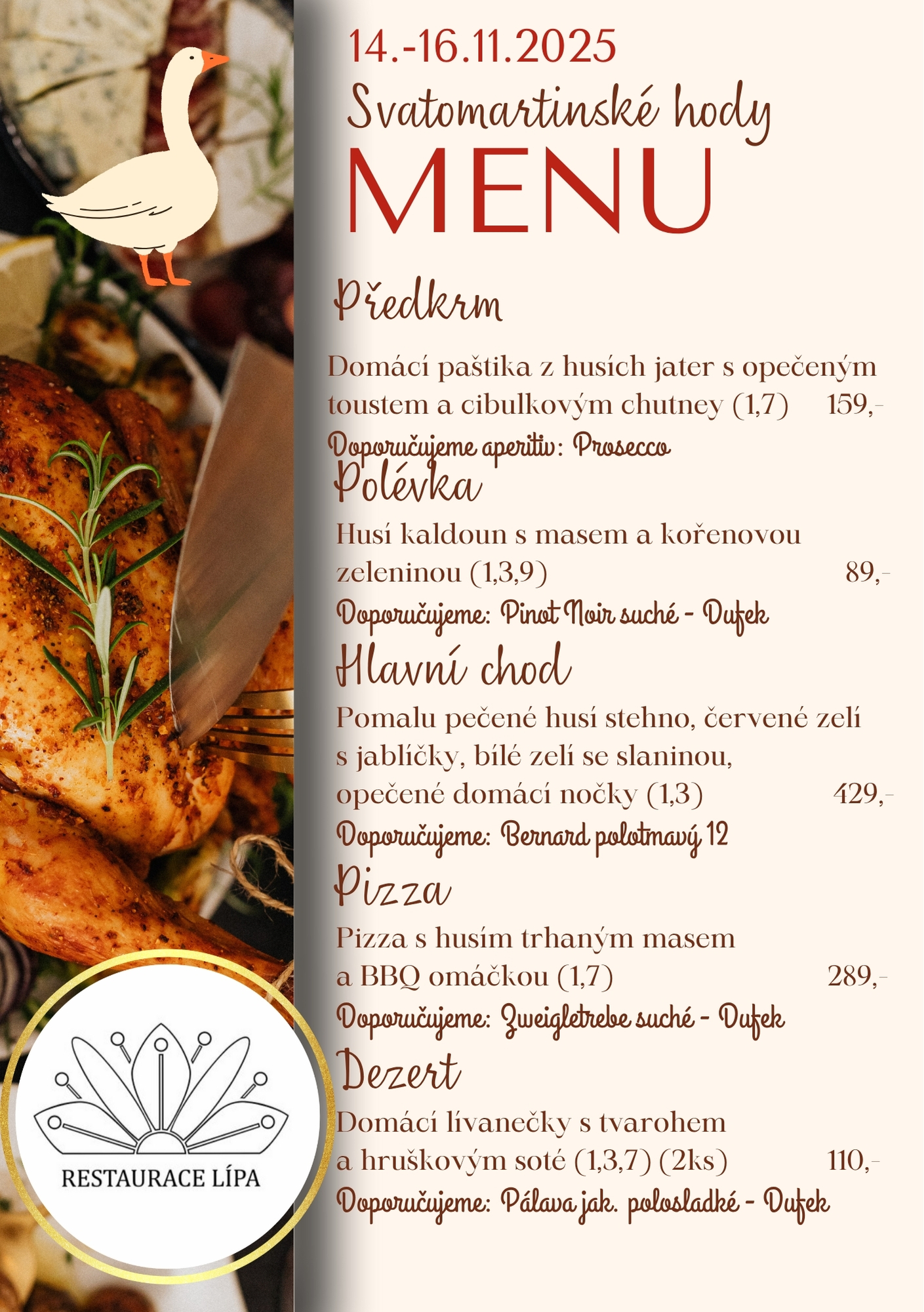 Stálý jídelní lístek | Menu na tento týden | Svatomartinské hody
