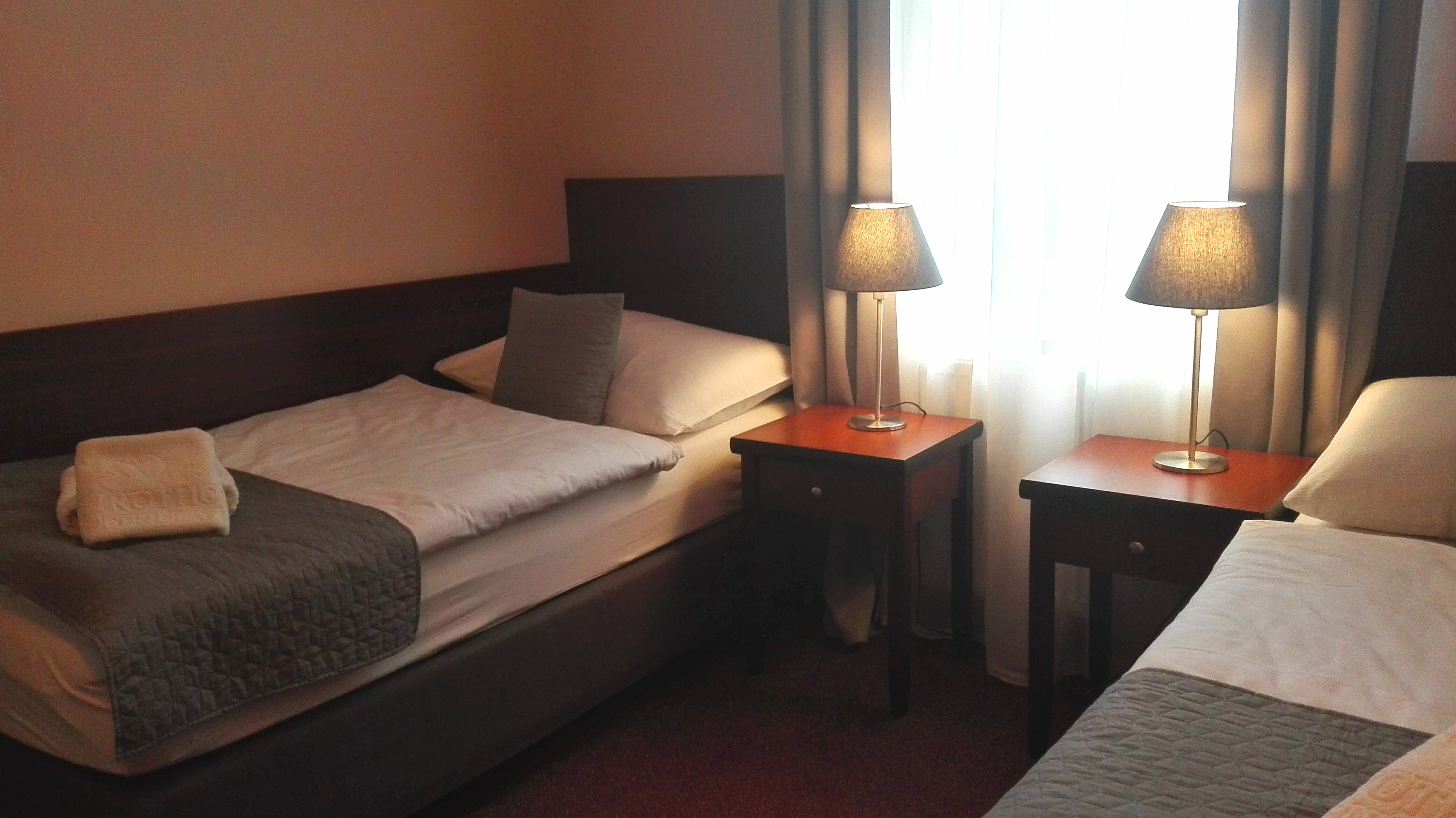 Ve druhém patře jsou k dispozici tři menší pokoje kategorie TWIN, tj. dvoulůžkové pokoje s oddělenými lůžky. Koupelna je vybavena sprchovým koutem.