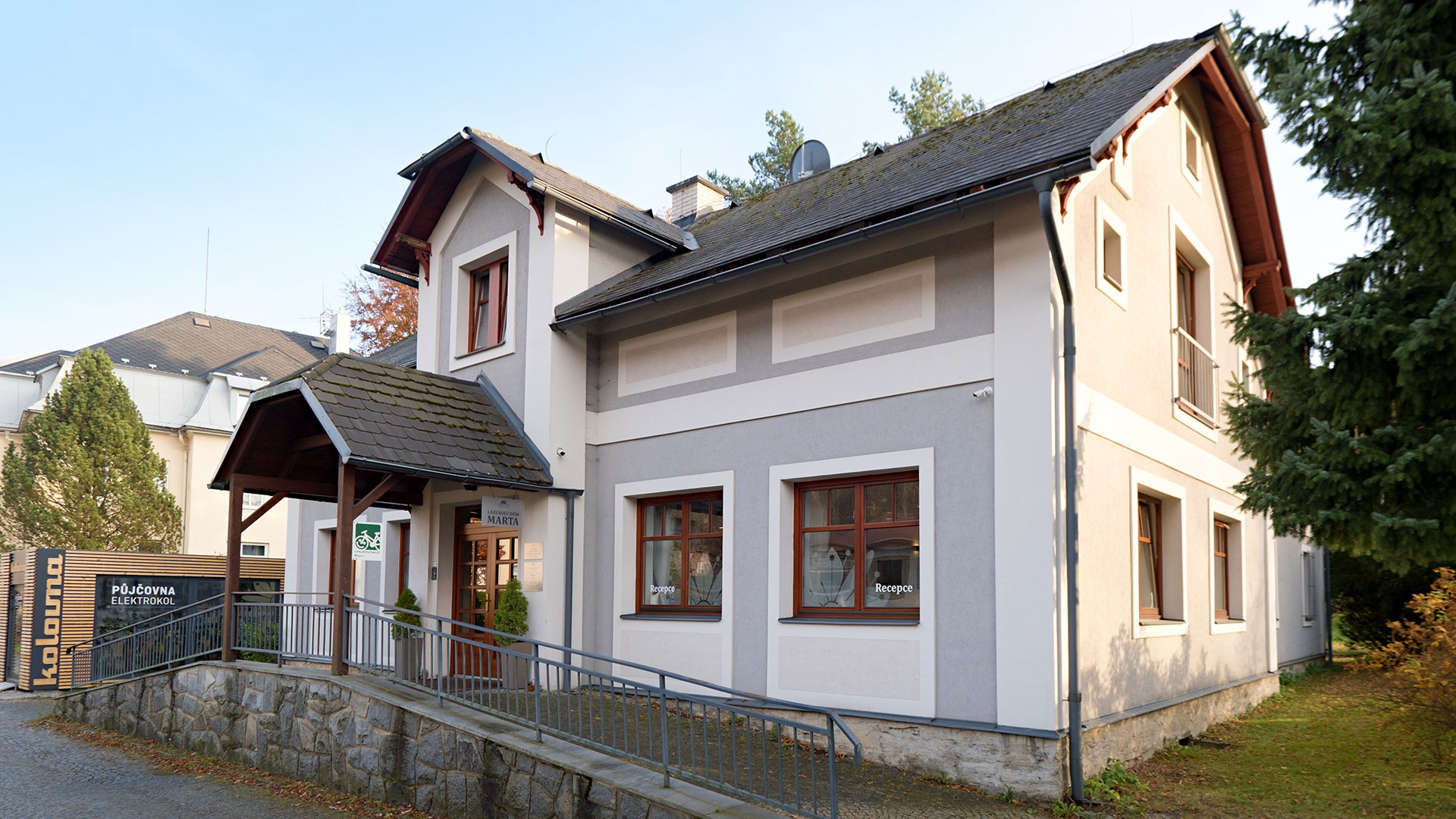 Budova centrální recepce pro celý areál, kde jsme Vám k dispozici denně od 7:00 do 22:00 hod., přijímací kanceláře a ředitelství. Ve Ville Marta se nachází také lázeňský obchůdek, ve kterém můžete zakoupit nejen regionální produkty, ale i léčivé masti, voňavé polštářky a mnoho dalšího.