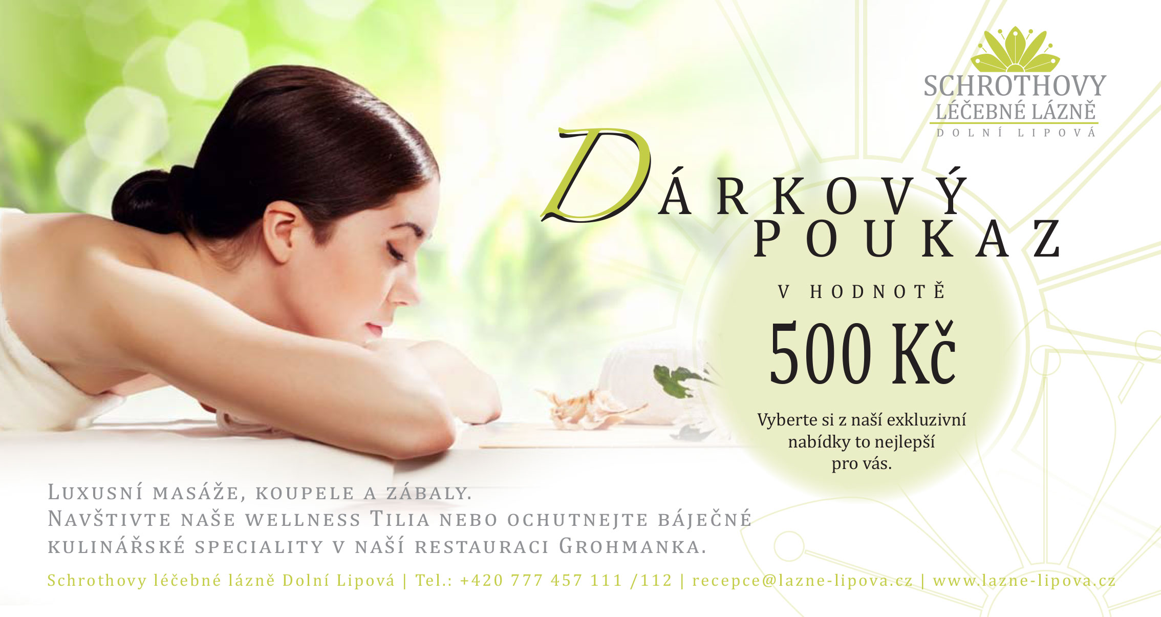 Potěšte své blízké dárkovým poukazem na pobyt v lázních v hodnotě 500,- Kč.